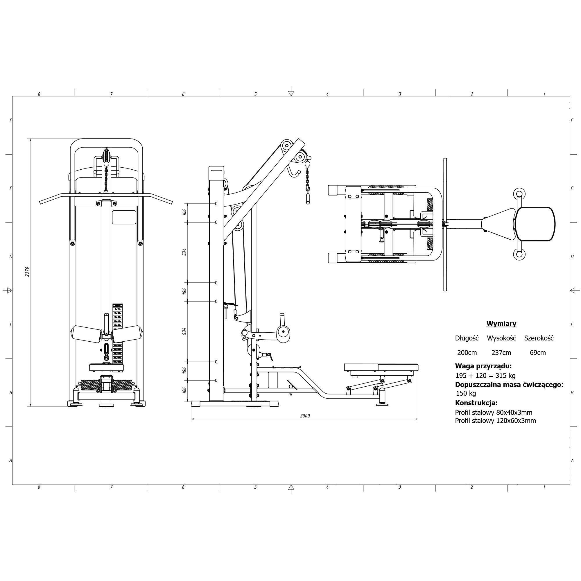 El elevador está equipado con una pila de 120 kg, compuesta por las siguientes barras: 8 x 5 kg, 8 x 10 kg. Tal distribución de la carga hará posible que tanto principiantes como avanzados puedan ejercitarse en el elevador.