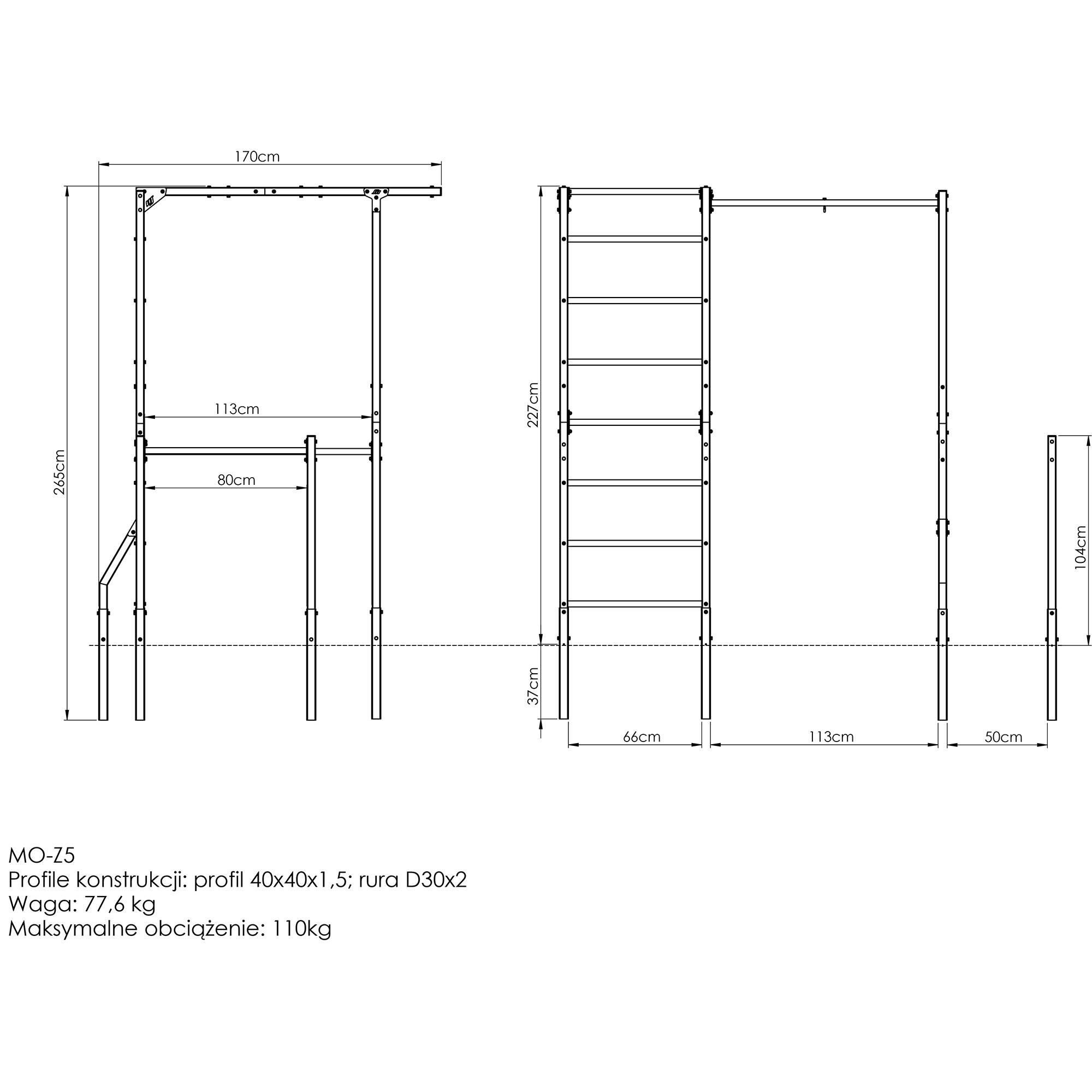 Estructura exterior con escalera sueca, barra de dominadas, barras paralelas y soporte para saco de boxeo MO-Z5 - Marbo Sport